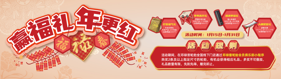 迎福禮 年更紅!購(gòu)2條及以上指定尺寸輪胎,有機(jī)會(huì)獲得相應(yīng)禮品。