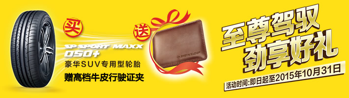 至尊駕馭 盡享好禮!購(gòu)買兩條任意規(guī)格SP SPORT MAXX 050+輪胎,即贈(zèng)高檔牛皮行駛證夾一個(gè)