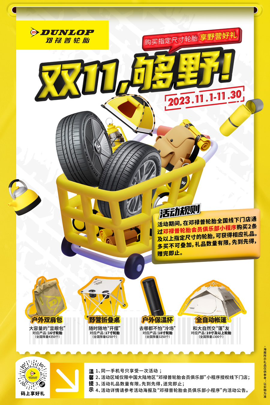雙11,夠野!購(gòu)買(mǎi)指定尺寸輪胎,享野營(yíng)好禮!