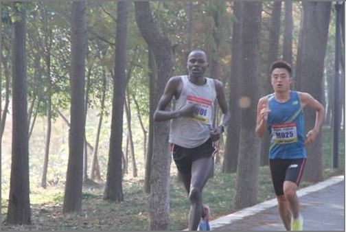 半程馬拉松途中,中外運(yùn)動員同場競技的一幕