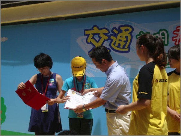 ??????? 本次的少兒交通安全繪畫大賽,征集了來自上海、北京、廣州、大連等24所小學的在校學生創(chuàng)作的繪畫作品,并得到了少年日報總編杜曉峰先生、上海寓教于樂投資管理有限公司 總經(jīng)理 朱寅先生的大力支持,讓優(yōu)秀的繪畫作品走入了世博會?,F(xiàn)在,優(yōu)秀的作品評選已經(jīng)結(jié)束,經(jīng)過將近一個月的嚴格評選,一等獎1名、二等獎2名、三等獎10名的獲獎名單已經(jīng)確定,最終上海的浦明師范附屬小學的葉文妍同學獲得了本次少兒繪畫大賽的一等獎。7月25日,在上海世博園內(nèi)舉辦的盛大頒獎典禮上,獲獎的小同學們在歡樂的氣氛中接過了由住友橡膠(常熟)有限公司總經(jīng)理野尻恭先生、副總經(jīng)理西口豪一先生、少年日報社總編杜曉峰先生頒發(fā)的證書及獎品,并獲得了暢游世博會的邀請。在頒獎典禮的現(xiàn)場,所有優(yōu)勝的獲獎作品都被擺放在Abilia育樂灣的鄧祿普體驗區(qū)內(nèi),吸引了來自各地的眾多游客的目光。在歡樂的氣氛中,獲獎的小同學們攜手開始世博會的游覽,至此,由鄧祿普舉辦的少兒交通安全繪畫大賽畫上了圓滿的句號,不過這對于鄧祿普公司來說,將是下一個交通安全推廣活動的起點,請讓我們大家拭目以待,鄧祿普在2011年,再次為我們奉上更加生動交通安全活動吧。