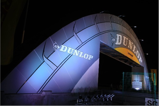 ??????? 2010年8月21日晚,“激情四溢 鄧祿普勝利之夜”--鄧祿普橋竣工揭幕儀式,在上海天馬山賽車場舉行。隨著住友橡膠(常熟)有限公司董事長兼總經(jīng)理野尻恭先生按動觸發(fā)球,兩支火箭劃破夜空,飛躍數(shù)百米,點亮了位于天馬山賽車場八號彎的鄧祿普橋。在絢爛煙火與燈光的映襯下,這座新落成的建筑熠熠生輝,驚艷全場。據(jù)悉,與佇立于法國勒芒賽道的鄧祿普橋外一樣,該橋?qū)⒁浴坝觿倮邩s譽之橋”的姿態(tài),為車手們加油鼓勁,并且還將傳遞鄧祿普輪胎對中國汽車運動以及汽車產(chǎn)業(yè)欣欣向榮的祝愿。