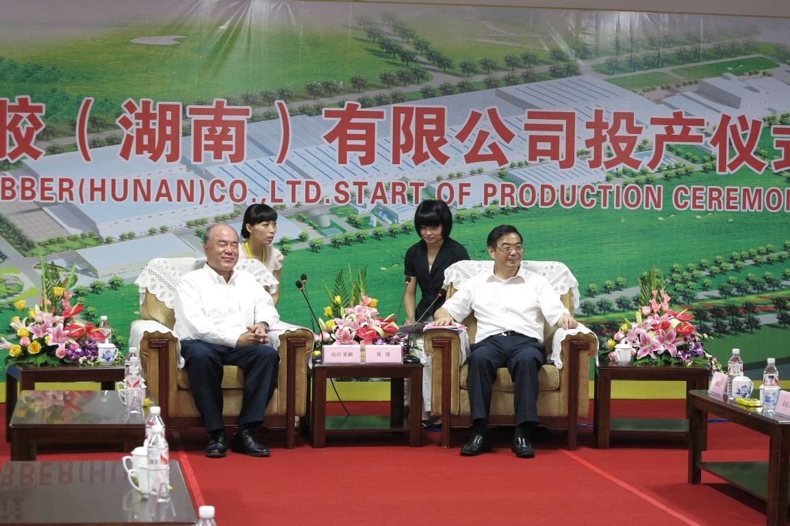 此次投產(chǎn)儀式上,湖南省委書記、省人大常委會主任周強(qiáng)會見了日本住友橡膠工業(yè)株式會社社長池田育嗣一行,并出席投產(chǎn)儀式宣布產(chǎn)品投產(chǎn);湖南省委常委、長沙市委書記陳潤兒在儀式上致辭,省委常委、省委秘書長易煉紅也蒞臨現(xiàn)場。池田育嗣代表住友橡膠感謝湖南省各級各部門的大力支持,并且表示住友橡膠來湘期間見證了湖南省、長沙市日新月異的發(fā)展變化,十分榮幸能夠在這里設(shè)廠。隨著中國汽車產(chǎn)業(yè)的發(fā)展和企業(yè)生產(chǎn)能力的提高,雙方未來合作的前景美好、潛力巨大。