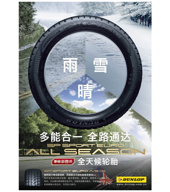 為了解決駕車族們季節(jié)性換胎的煩惱,尋找到一款能夠兼顧“晴、雨、雪”天氣的全能型輪胎,一直致力于輪胎開發(fā)的世界著名的輪胎專家——鄧祿普輪胎,經(jīng)過反復(fù)嘗試和研究,終于克服難關(guān)獲得成功。2013年10月30日,鄧祿普在北京舉辦新品發(fā)布會(huì),正式宣布將于今年11月份推出了一款可以從容應(yīng)對(duì)四季各種天氣狀況的“SP SPORT EURO A/S 08”全天候輪胎。
