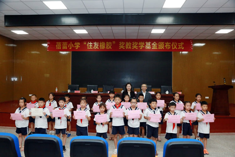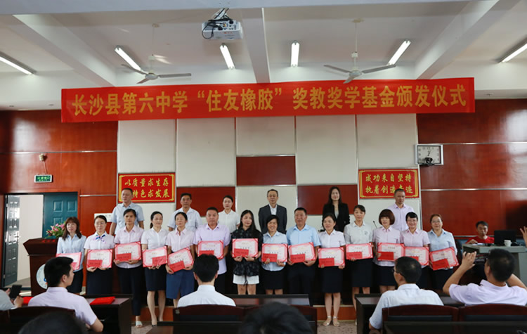 住友橡膠于2015年創(chuàng)立“住友橡膠獎教獎學基金”,用于獎勵學校優(yōu)秀師生,今年已經是第五年。今年住友橡膠(湖南)有限公司首創(chuàng)“住友橡膠獎教獎學基金“,湖南公司總經理舩原先生在頒獎致辭中表示:“獎教獎學基金的設立,旨在鼓勵潛心教學,精心培育青少年的各位老師,以及獎勵奮發(fā)努力、品學兼優(yōu)的各位同學”。長沙蓓蕾小學和長沙縣第六中學負責人代表兩校師生,向住友橡膠(湖南)有限公司對發(fā)展當?shù)亟逃聵I(yè)提供的支持及幫助表達了由衷的感謝。