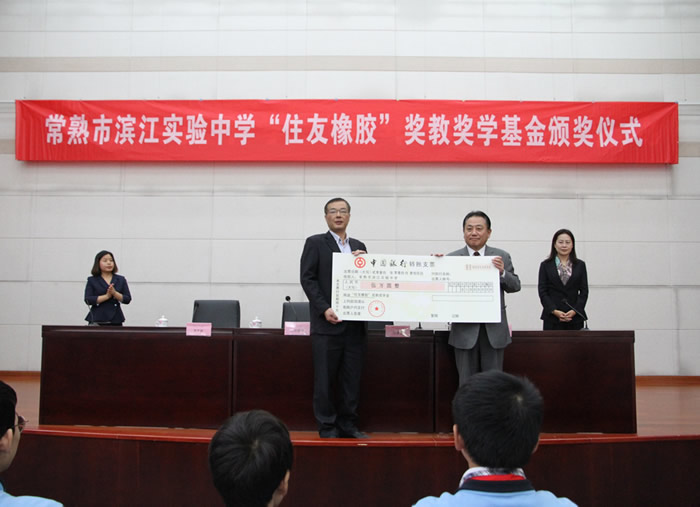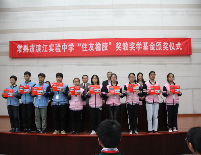 10月15日,常熟市濱江實驗中學(xué)舉辦了“住友橡膠獎教獎學(xué)基金”捐贈及頒發(fā)儀式,住友橡膠董事長山田直樹、濱江實驗中學(xué)師生代表等出席。該基金由住友橡膠(中國)有限公司創(chuàng)立,用于獎勵在工作中表現(xiàn)突出的教師以及品學(xué)兼優(yōu)的學(xué)生。作為該基金的創(chuàng)立者,住友橡膠積極踐行企業(yè)社會責(zé)任,熱心公益事業(yè),時刻關(guān)注常熟當(dāng)?shù)氐慕虒W(xué)發(fā)展,并為之提供幫助關(guān)懷行動。
