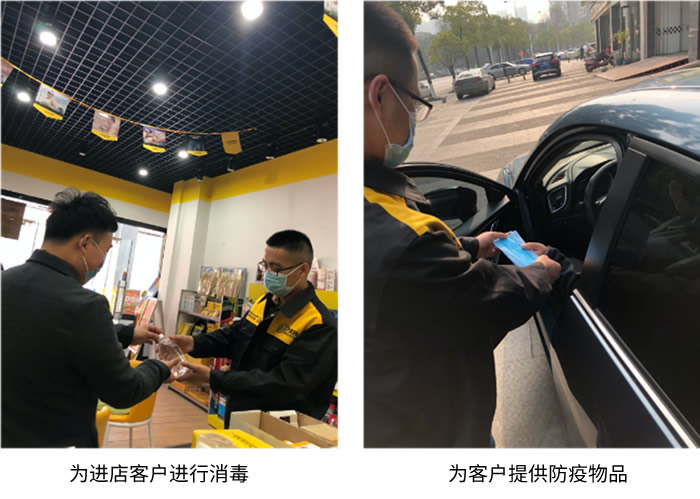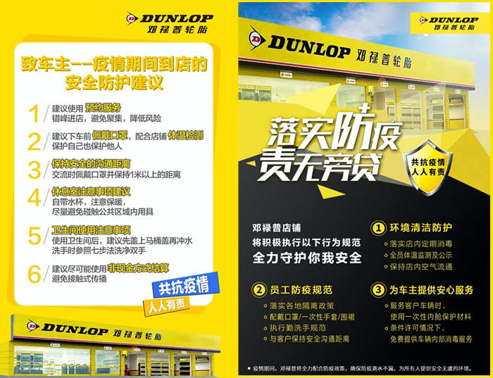鄧祿普輪胎門店同樣積極響應,嚴格落實門店防疫措施,防疫工作均達到當?shù)卣膹凸藴省iT店除體溫檢測、工作區(qū)域消毒等基本防疫工作外,有條件的門店,還開展服務升級,為到店客戶提供車內消毒服務和防疫物資,為不便到店的顧客提供上門服務及上門取送車等服務。