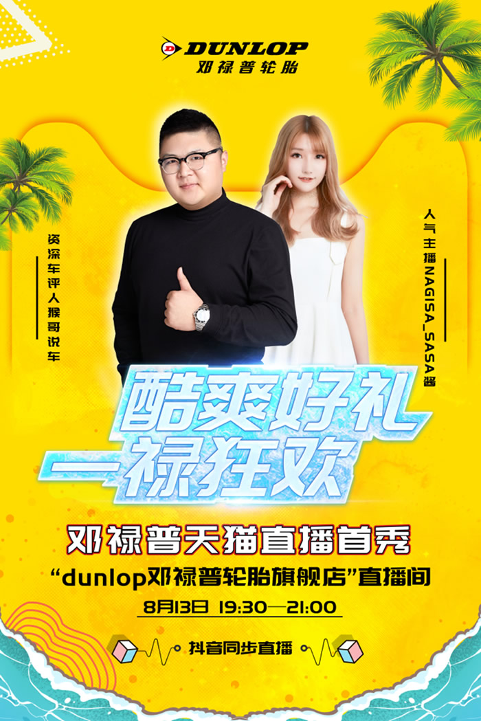 本場直播活動將在淘寶平臺和抖音平臺同步進(jìn)行,淘寶用戶可搜索店鋪 “dunlop鄧祿普輪胎旗艦店” 進(jìn)入直播間;抖音用戶可直接搜索“猴哥說車”(抖音號:1636323608)進(jìn)入直播間。