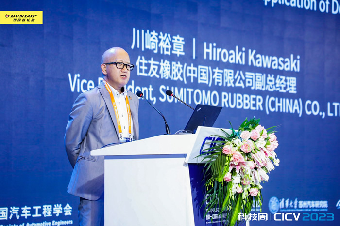 住友橡膠(中國)有限公司(以下簡稱住友橡膠集團)AS事業(yè)部副總經理川崎裕章出席了會議,并在大會的“運載裝備智能感知技術與應用”專題研討會環(huán)節(jié)分享了旗下品牌鄧祿普在輪胎科技領域的創(chuàng)新解決方案和全新研發(fā)成果。