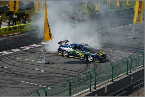 ??? 10月6日,由鄧祿普輪胎冠名贊助的“2009鄧祿普DIREZZA杯首屆全國(guó)汽車漂移系列賽”在上海天馬山賽車圓滿結(jié)束。漂移賽吸引了眾多職業(yè)車手和大量賽車愛(ài)好者前來(lái)報(bào)名,經(jīng)過(guò)賽事組委會(huì)篩選,最終有15名車手進(jìn)入資格賽,經(jīng)過(guò)雙車追走PK的激烈角逐,浙江名將張少華力壓臺(tái)灣地區(qū)著名漂移車手張盛鈞,奪得冠軍,他也由此獲得了首位全國(guó)漂移冠軍的殊榮。來(lái)自廣東的漂移新秀黃欽杰表現(xiàn)出眾,捧得季軍獎(jiǎng)杯。比賽當(dāng)天正值十一長(zhǎng)假,吸引了大量觀眾前來(lái)觀賽,還吸引了多家媒體前來(lái)報(bào)道。