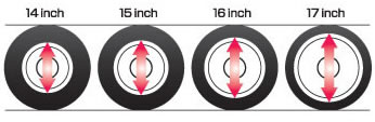 ● 輪胎寬度控制在既不觸及車身也不凸出車側(cè)面輪廓的范圍內(nèi)。
