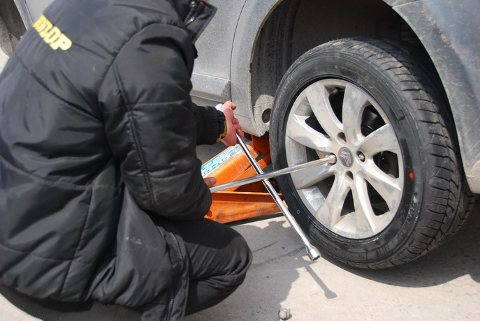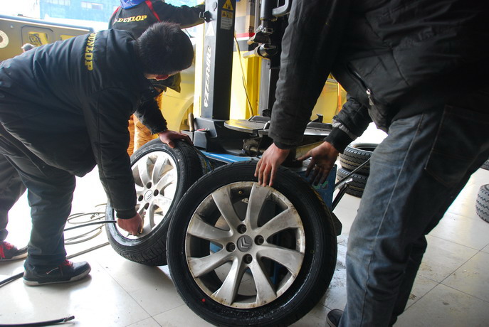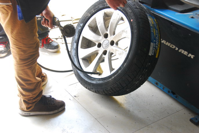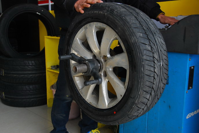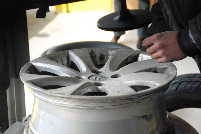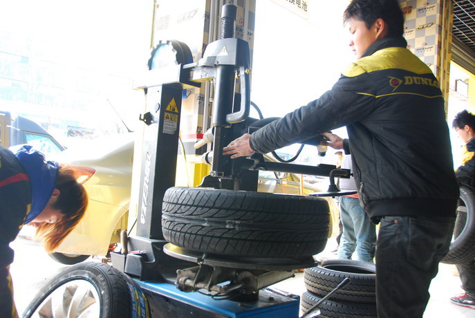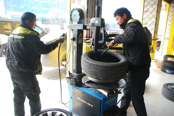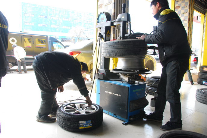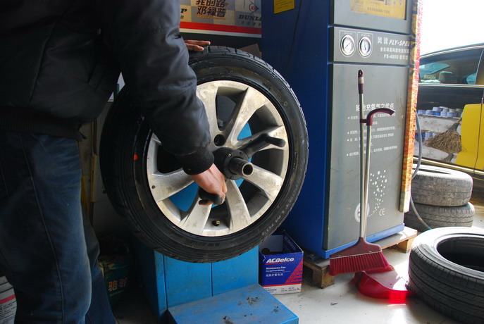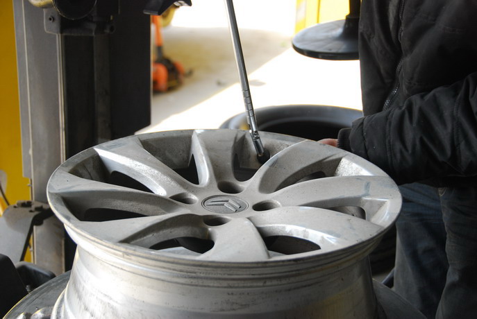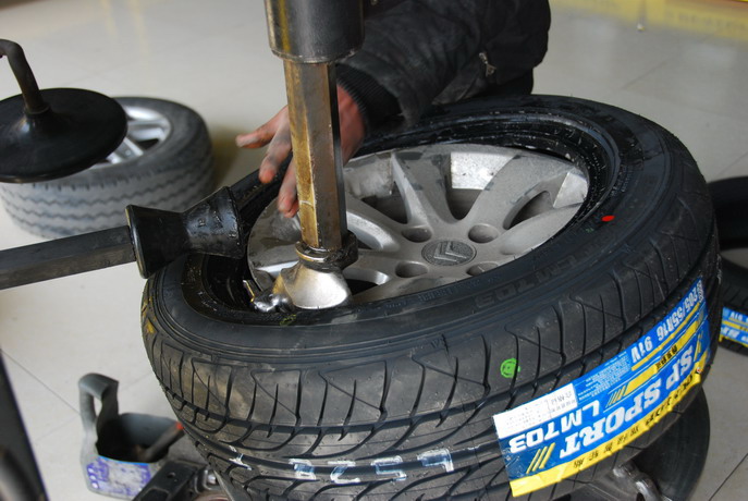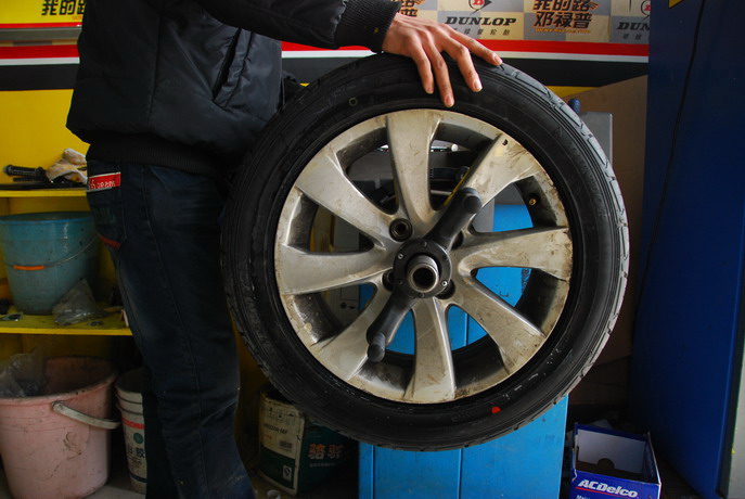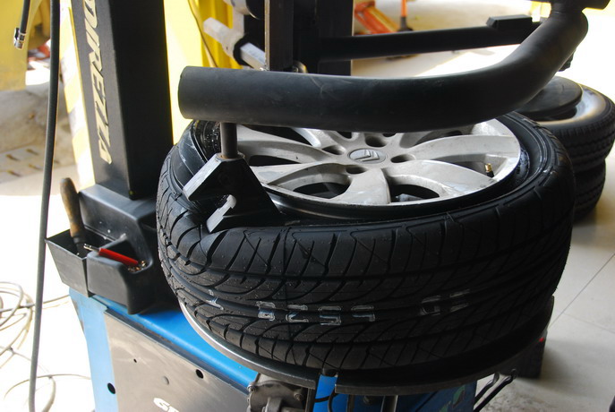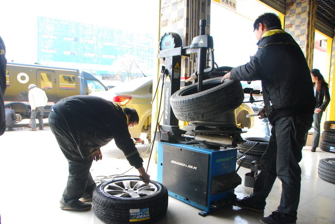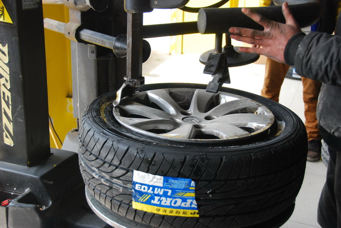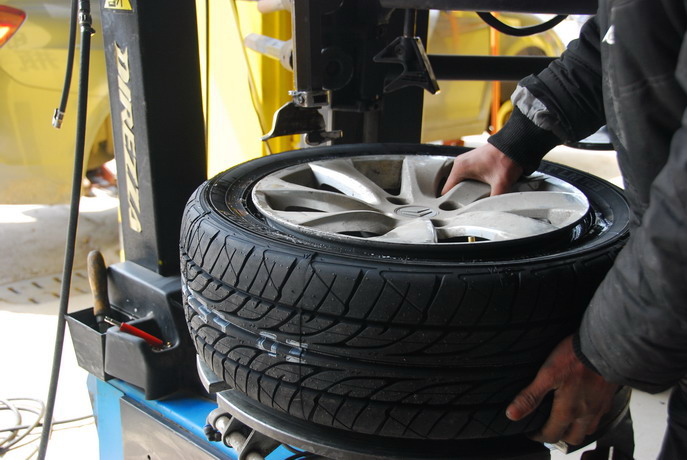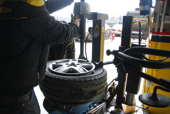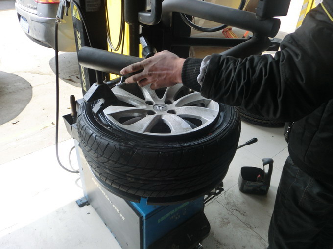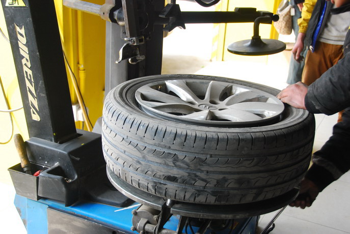 舊輪胎拆輪輞:取下輪胎放置到工作臺上開始拆卸